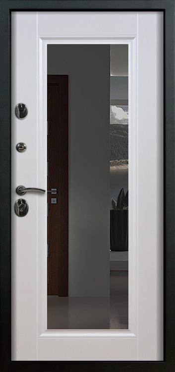 Металлическая входная дверь с зеркалом внутри №1 создана как универсальное решение для дома, квартиры или офиса, где важны и безопасность, и комфорт. Каркас выполнен из прочной профильной трубы с металлическим листом толщиной 2 мм и рёбрами жёсткости, что обеспечивает устойчивость к механическим воздействиям и долгий срок службы. Снаружи дверь покрыта порошковой окраской, стойкой к атмосферным влияниям и царапинам, а изнутри отделана МДФ с ПВХ-покрытием, которое сохраняет свежий вид даже при интенсивной эксплуатации. Встроенное зеркало превращает полотно в практичный элемент интерьера: оно визуально расширяет пространство прихожей и избавляет от лишних предметов мебели. Два контура уплотнителей защищают от пыли и сквозняков, а блокираторы усиливают общую надёжность конструкции. Модель не оснащена терморазрывом, зато отличается продуманным балансом практичности и доступной цены, оставаясь удобным вариантом для повседневного использования. Металлическая входная дверь с зеркалом внутри №1 от производителя: быстрое изготовление и монтаж в Некрасовском, индивидуальные размеры, широкий выбор материалов и фурнитуры, официальная гарантия до 10 лет.