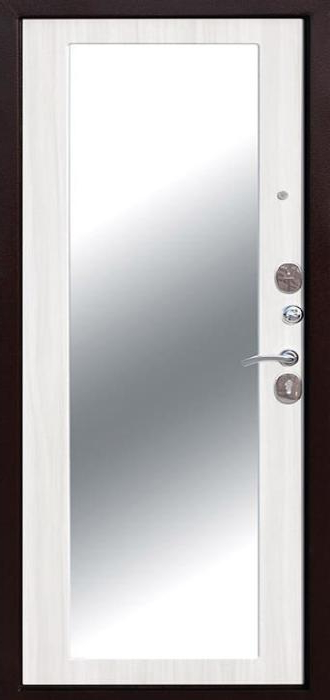 Сдержанный белый цвет придаёт модели лёгкость и визуальную чистоту, а зеркало внутри делает её особенно удобной для городских квартир и офисов, где важна каждая деталь интерьера. Белая входная дверь в квартиру с зеркалом №50 сочетает в себе функциональность и надёжность: прочный стальной каркас из профильной трубы и лист металла толщиной 2 мм обеспечивает защиту, рёбра жёсткости усиливают конструкцию, а два контура уплотнителей помогают снизить проникновение сквозняков и шума. Отделка из МДФ-накладок устойчива к царапинам и не теряет аккуратного вида даже при активной эксплуатации. Зеркальная вставка экономит пространство и делает коридор светлее, а наличие двух замков — сувальдного Просам и цилиндрового Мосрентген — обеспечивает дополнительный уровень безопасности. Белая входная дверь в квартиру с зеркалом №50 от производителя: быстрое изготовление и монтаж в Некрасовском, индивидуальные размеры, широкий выбор материалов и фурнитуры, официальная гарантия до 10 лет.