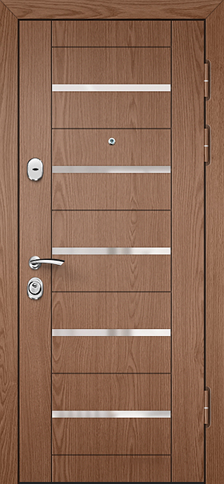 Входная дверь с зеркальным полотном №53 выделяется тем, что зеркало занимает почти всю внутреннюю поверхность, превращая дверь не просто в защитный элемент, а в полноценную часть интерьера. Такое решение особенно удобно для квартир и офисов, где зеркало необходимо ежедневно, а отдельное место для него найти непросто. Каркас изготовлен из профильной трубы и усилен рёбрами жёсткости, стальной лист толщиной 2 мм обеспечивает прочность и устойчивость к нагрузкам. В отделке использованы панели МДФ с ПВХ-покрытием, которые стойко переносят повседневные испытания и сохраняют внешний вид долгие годы. Два контура уплотнения защищают от сквозняков и уличного шума, а возможность выбрать размеры и направление открывания позволяет адаптировать модель для частных домов и городских квартир. Входная дверь с зеркальным полотном №53 от производителя: быстрое изготовление и монтаж в Некрасовском, индивидуальные размеры, широкий выбор материалов и фурнитуры, официальная гарантия до 10 лет.