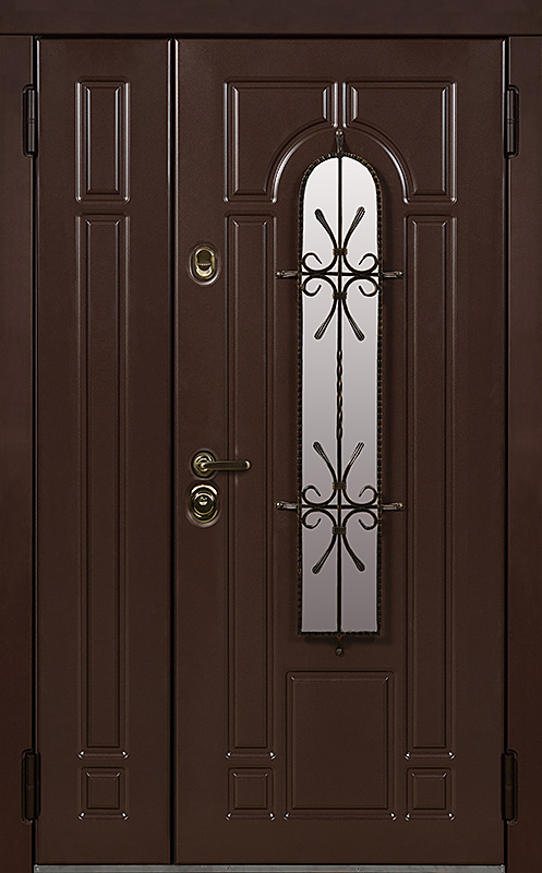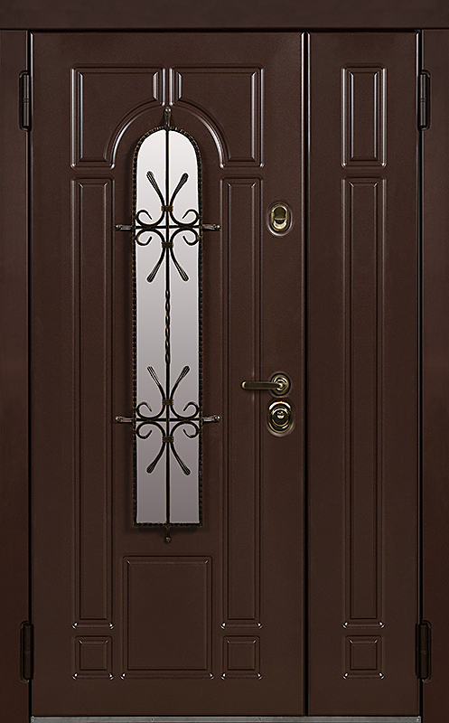 Эта металлическая двухстворчатая дверь с арочным стеклопакетом №15 представляет собой идеальный баланс между эстетикой и прочностью. Арочное стекло добавляет в её дизайн утончённость, а ковка в декоре придаёт изысканный, но в то же время крепкий и надёжный вид. Плита МДФ, используемая как для внешней, так и для внутренней отделки, не только сохраняет прекрасный внешний вид, но и устойчива к механическим повреждениям. Металлическая двухстворчатая дверь с арочным стеклопакетом №15 от производителя: быстрое изготовление и монтаж в Некрасовском, индивидуальные размеры, широкий выбор материалов и фурнитуры, официальная гарантия до 10 лет.