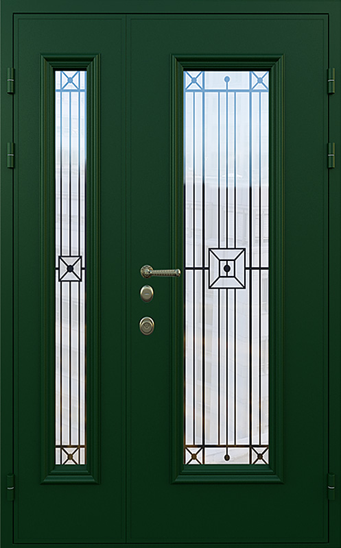 Зеленая полуторная дверь со стеклопакетом для частного дома №18 — это идеальный выбор для тех, кто хочет добавить в свой дом надежность и стиль. Элементы декора, такие как багет и ковка, придают двери элегантный вид, который идеально гармонирует с фасадом загородного дома. Панели МДФ с ПВХ-покрытием, использованные для внешней и внутренней отделки, обеспечивают высокую стойкость к механическим повреждениям и внешним воздействиям, сохраняя прекрасный внешний вид на долгое время. Зеленая полуторная дверь со стеклопакетом для частного дома №18 от производителя: быстрое изготовление и монтаж в Некрасовском, индивидуальные размеры, широкий выбор материалов и фурнитуры, официальная гарантия до 10 лет.