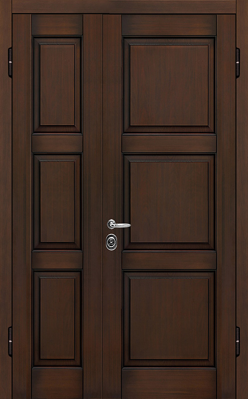 Двойная филенчатая дверь для загородного дома венге №7 сочетает в себе элегантность и прочность. Ее внешняя отделка выполнена из панелей МДФ с ПВХ, что придает двери современный вид, а также обеспечивает устойчивость к механическим повреждениям и долговечность. Каркас из профильной трубы 50х25 мм и полотно толщиной 2 мм гарантируют надежность и устойчивость к нагрузкам. Ребра жесткости из профильных труб 40х25 мм усиливают конструкцию, а уплотнение с двумя контурами защищает от проникновения влаги и пыли. Замки "Просам" и "Мосрентген" с тремя ригелями обеспечивают высокий уровень безопасности. В дверь можно добавить дополнительные элементы, такие как стеклопакет, зеркало или кованые детали, что позволяет адаптировать ее под любой интерьер. Терморазрывы в коробке и полотне способствуют лучшей теплоизоляции, обеспечивая комфорт в любое время года. Двойная филенчатая дверь для загородного дома венге №7 от производителя: быстрое изготовление и монтаж в Некрасовском, индивидуальные размеры, широкий выбор материалов и фурнитуры, официальная гарантия до 10 лет.