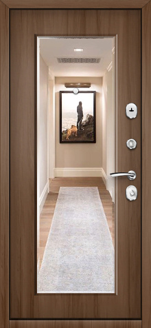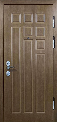 Дверь наружная с покрытием под дерево №3 — это стильное и надежное решение для вашего частного дома, квартиры или офиса. Конструкция двери включает прочный каркас из профильной трубы и металл толщиной 2 мм, что гарантирует долговечность и защиту от внешних воздействий. Внешняя и внутренняя отделка выполнены из плиты МДФ, что придает двери эстетичный вид и устойчивость к механическим повреждениям. Декор в виде зеркала подчеркивает её элегантность, а блокираторы и высококачественные замки (Просам и Мосрентген) обеспечивают высокий уровень безопасности. Дверь также оснащена двумя контурами уплотнения, что способствует хорошей изоляции. Возможность добавить стеклопакет, кованые элементы или видеодомофон делает этот продукт еще более универсальным и практичным для различных типов объектов. Дверь наружная с покрытием под дерево №3 от производителя: быстрое изготовление и монтаж в Некрасовском, индивидуальные размеры, широкий выбор материалов и фурнитуры, официальная гарантия до 10 лет.