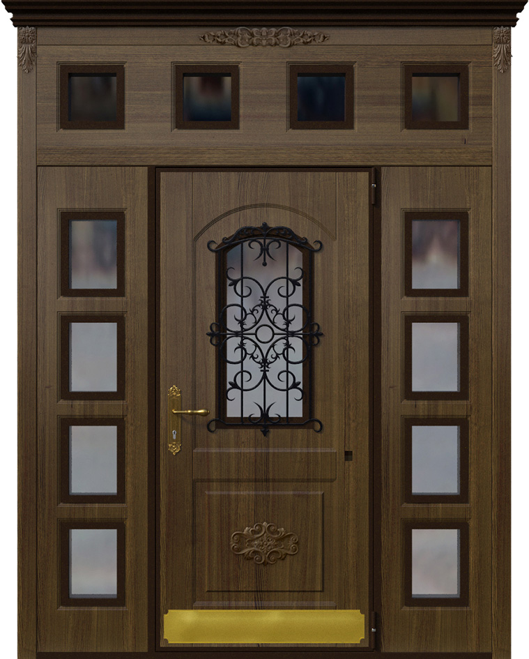 Эта модель выделяется своим масштабом и декоративностью: двухстворчатая дверь со вставками и ковкой №2 подчеркивает парадность входа и придает фасаду респектабельность. Основу составляет прочный каркас из стальных профильных труб с листом металла толщиной 2 мм и ребрами жесткости, что обеспечивает долговечность и защиту. Снаружи и внутри полотно облицовано накладками МДФ, которые позволяют воплотить различные варианты текстур и оттенков, сохраняя устойчивость к механическим повреждениям и влиянию внешней среды. Кованые элементы вносят в образ двери нотку изысканности и индивидуальности, делая ее центральным акцентом всего фасада. Для безопасности предусмотрены два замка турецкого производителя Kale Kilit — цилиндровый и сувальдный, каждый с ригелями, усиливающими защиту. Такая дверь сочетает надежность металлической конструкции с эстетикой классического дизайна, превращая вход в настоящий архитектурный акцент. Двухстворчатая дверь со вставками и ковкой №2 от производителя: быстрое изготовление и монтаж в Некрасовском, индивидуальные размеры, широкий выбор материалов и фурнитуры, официальная гарантия до 10 лет.