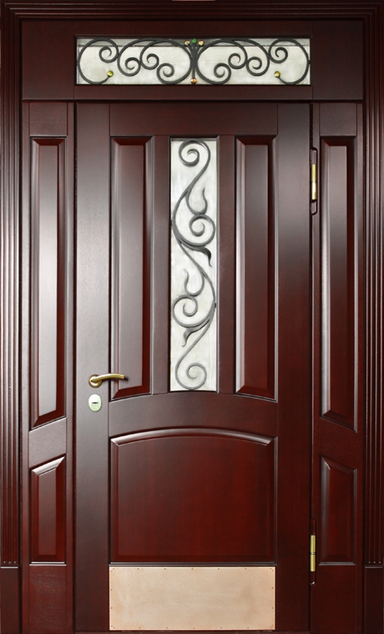 Красивая шпонированная дверь с надежной фурнитурой и ковкой "лоза" №33 идеально дополнит интерьер вашего частного дома или коттеджа. Внешняя и внутренняя отделка выполнены из натурального дерева, что придает двери элегантность и стиль. Профильная труба 50х25 мм используется для каркаса и полотна, а лист металла толщиной 2 мм и ребра жесткости из профильных труб 40х25 мм обеспечивают прочность и долговечность. Несмотря на отсутствие терморазрыва, дверь гарантирует надежную защиту и теплоизоляцию благодаря двум контурам уплотнения. Элементы ковки "лоза" придают двери особое очарование, сочетая практичность с эстетикой. Эта дверь — идеальный выбор для тех, кто ценит стиль, качество и безопасность. Красивая шпонированная дверь с надежной фурнитурой и ковкой "лоза" №33 от производителя: быстрое изготовление и монтаж в Некрасовском, индивидуальные размеры, широкий выбор материалов и фурнитуры, официальная гарантия до 10 лет.
